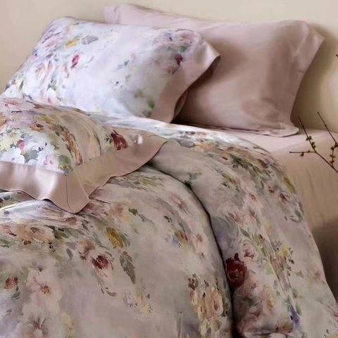 Bộ đồ giường bốn mảnh ấm cúng đặt mô hình thực vật hiện đại mềm mại đầy màu sắc giặt bông chăn bông chăn Ga Trải Giường phẳng kỹ thuật dệt